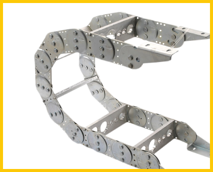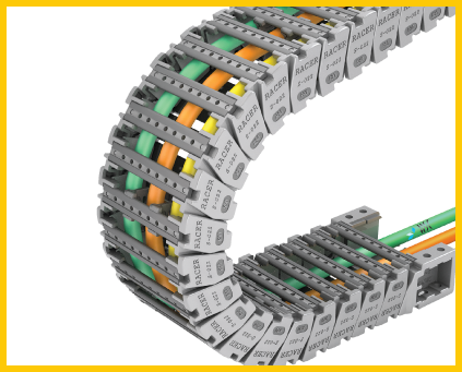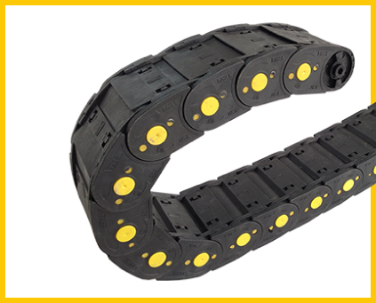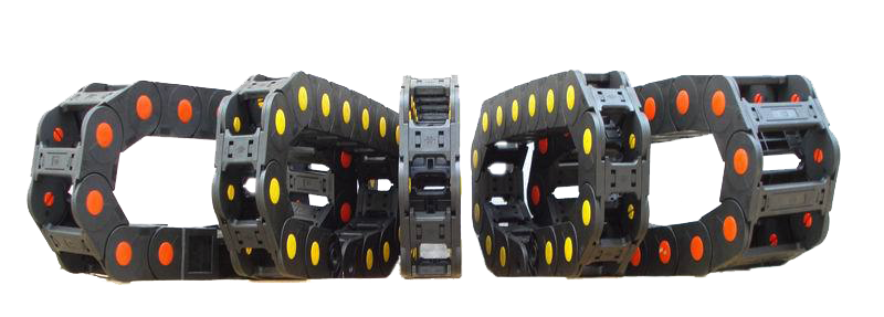 PLASTIC CABLE DRAG CHAINThe enclosed electric cable moves along the length of drag chain and this cable chain moves in the moving parts of the machine.